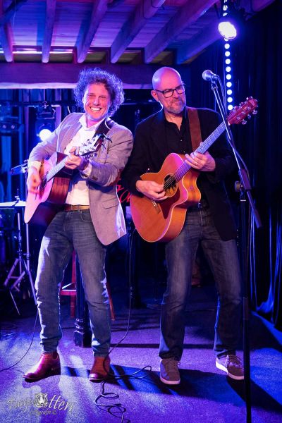 Twee stemmen, twee gitaren, af en toe een mondharmonica en een professionele installatie (met een volumeknop die twee kanten op kan…), meer heeft Ginfish niet nodig om op elke gelegenheid het plaatje compleet te maken. Compact maar toch met een verrassend vol geluid, wel aanwezig maar nooit hinderlijk.